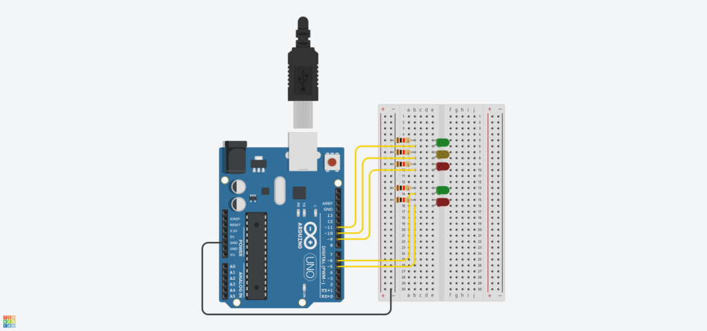 5x цветные LEDы (3 для машин, 2 для людей)