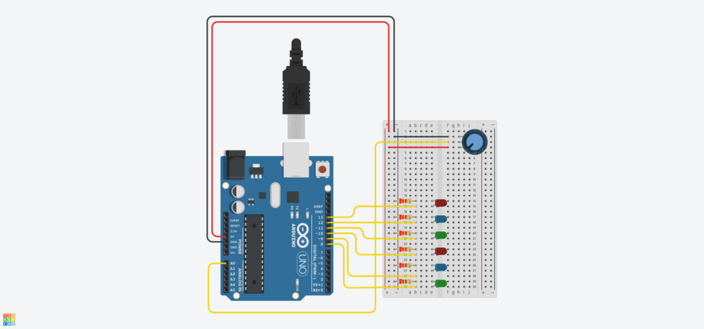 6x цветные LEDы (2 крассных, 2 синих, 2 зеленых)