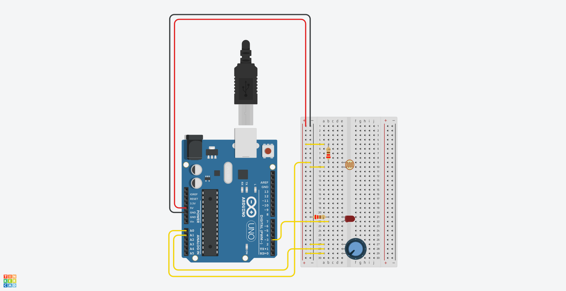 Интенсивность света зависит от окружающего освещения (светового резистора).